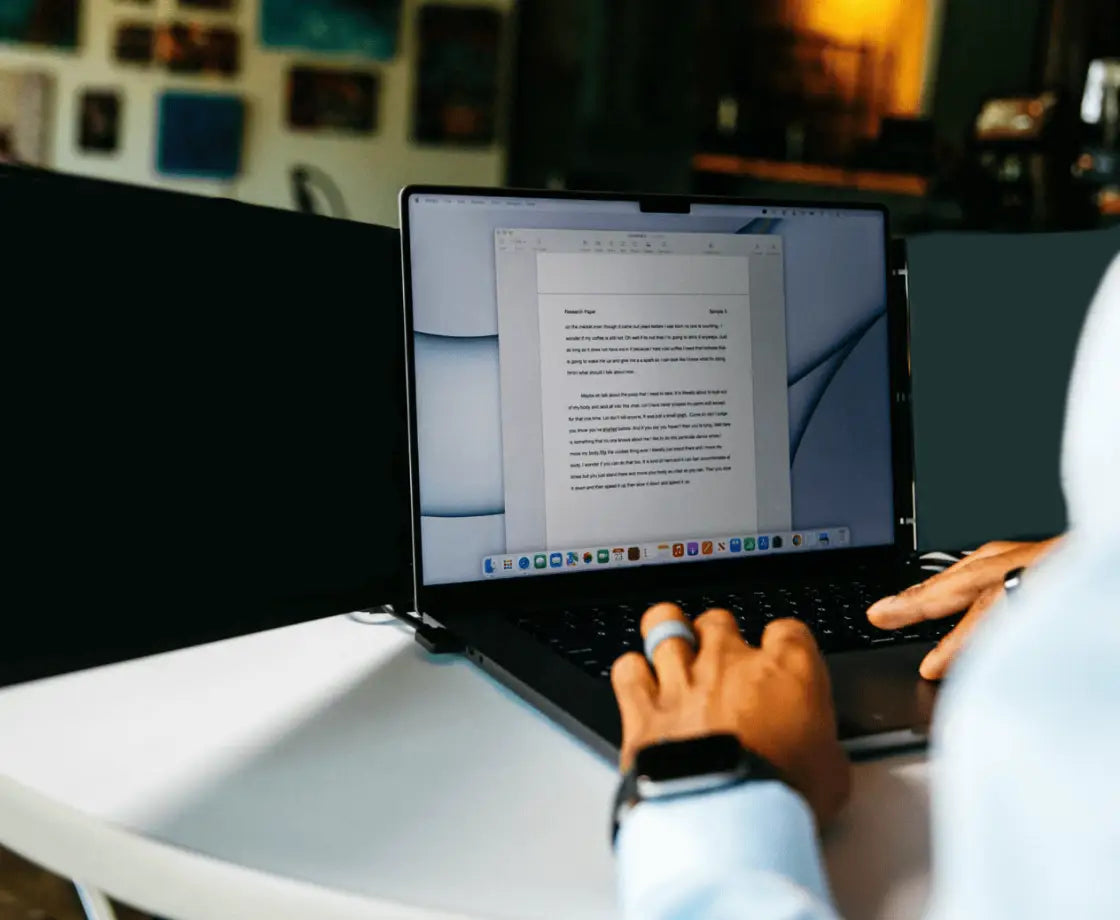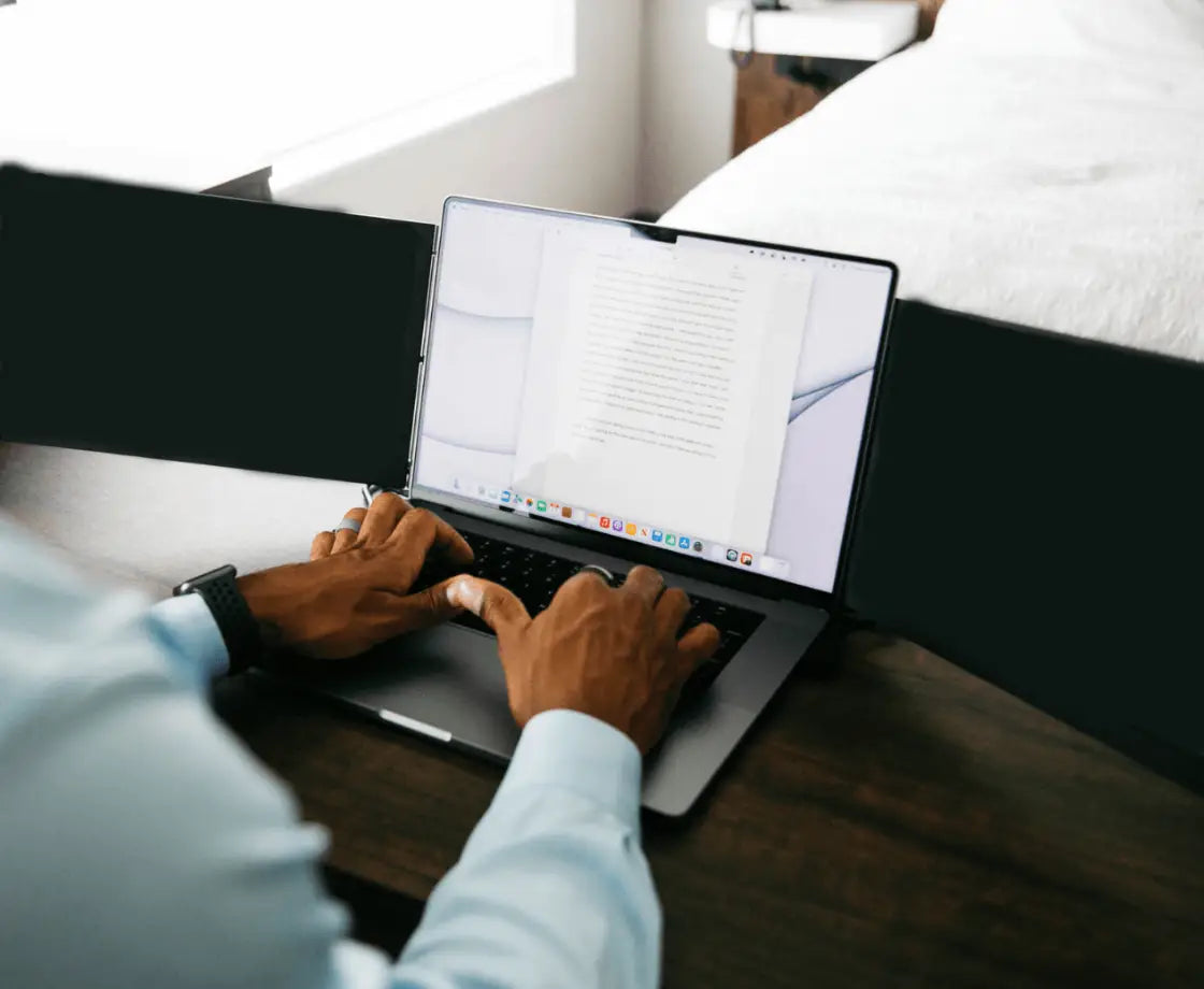 The Portable Dual-Screen Support helps you organize your workspace, hold two laptop screens securely, and stay productive wherever you go — without the bulk or complicated setup.
