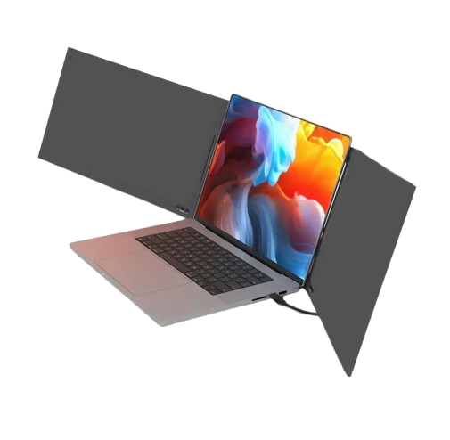 The Portable Dual-Screen Support is a lightweight, foldable mounting accessory that allows you to attach two external screens or panels to your laptop for a more comfortable and efficient workspace.